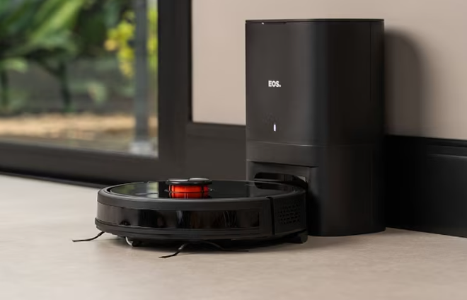 Robô aspirador da EOS tem base de limpeza automática e mapeamento 3D (Imagem: Divulgação/EOS)