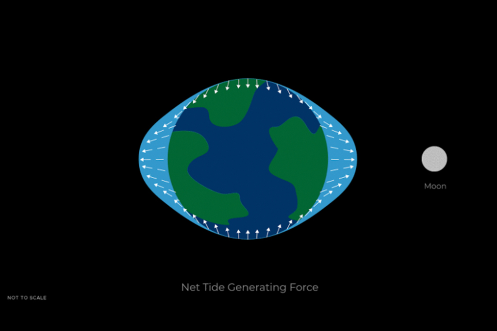 Pode parecer confuso, mas o resultado é que temos forças similares em lados opostos. Se você imaginar a Terra como um círculo perfeito desenhado em uma folha de papel e desenhar a Lua ao lado, os lados horizontais teriam a maré alta e os lados verticais, onde a força gravitacional da Lua é menor, teriam a maré baixa.