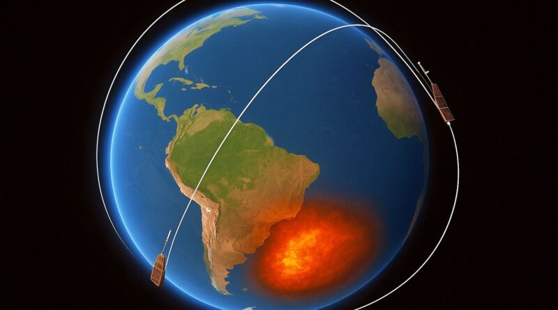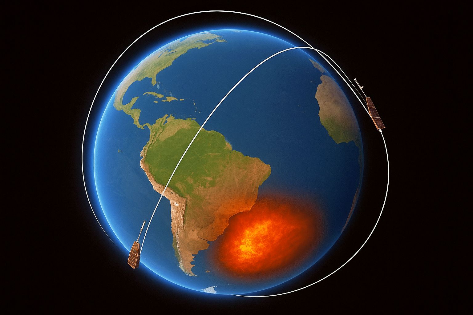 Desde 2013, três satélites europeus da missão Swarm monitoram o comportamento do campo magnético. Após mais de uma década de observações, os pesquisadores detectaram algo intrigante: uma área de enfraquecimento crescente entre a América do Sul e a África.