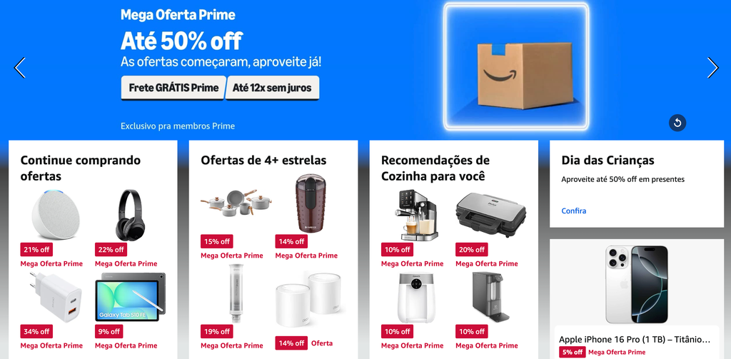 A Mega Oferta Prime segue por tempo limitado (de 7 a 10 de outubro), e os produtos com melhores descontos costumam esgotar rapidamente