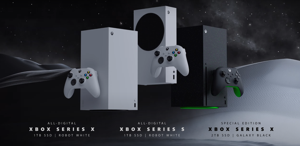 Os modelos de entrada sofreram reajustes significativos. O Xbox Series S e o Series S Black passam a custar US$ 399,99 e US$ 449,99, respectivamente. Já a linha Series X teve os maiores aumentos: a versão com leitor de discos foi para US$ 649,99, enquanto o modelo totalmente digital agora custa US$ 599,99. Por fim, a nova edição especial, Xbox Series X Galaxy Black de 2 TB, foi anunciada por US$ 799,99 — US$ 100 a mais que o PlayStation 5 Pro, tendo como principal diferencial o dobro do armazenamento.