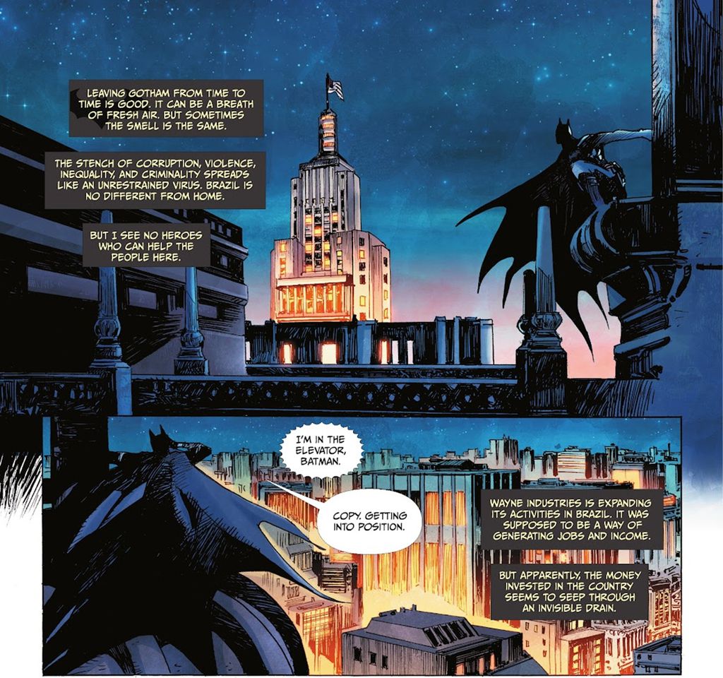 Outro exemplo relevante é Batman: The World, projeto da DC que convidou autores de vários países para reinterpretar o Cavaleiro das Trevas em cenários locais em 2021. O capítulo brasileiro traz o herói em solo nacional, sob a ótica de uma equipe criativa daqui, misturando as sombras de Gotham com dilemas e paisagens reconhecíveis para o leitor brasileiro.