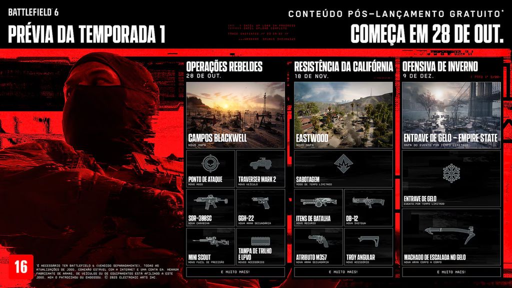 Essas não são todas as novidades da primeira temporada de Battlefield 6, já que a EA ainda não divulgou todas elas, algo que deve acontecer com a chegada de cada fase.