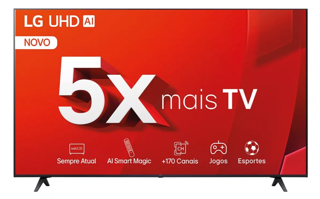 No mesmo nível que a anterior, LG oferece a UT8050 como uma forte concorrente. Seu principal trunfo é o sistema operacional webOS, conhecido por sua fluidez e pelo controle Smart Magic, que funciona como um mouse na tela.