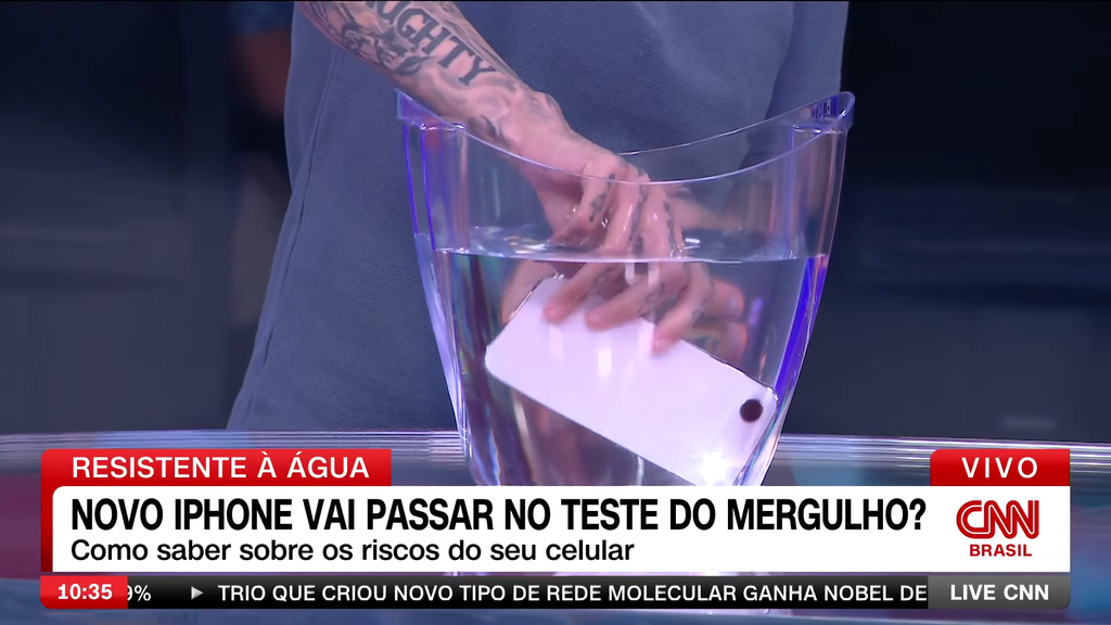 No episódio inaugural, o programa destacou o sistema de proteção e resistência à água dos novos iPhones, anunciados globalmente pela Apple no início de setembro. Durante a transmissão, Adriano realizou um “teste de mergulho” ao vivo, submergindo o iPhone Air em água e explicando em detalhes o funcionamento da certificação IP68, responsável por garantir a resistência do aparelho.