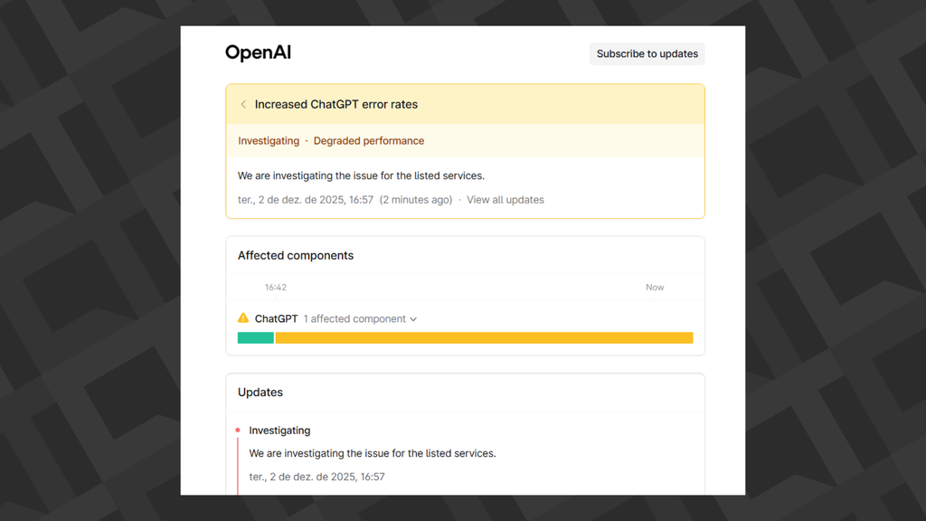 Mais informações devem ser publicadas no mesmo site (status.openai.com).
