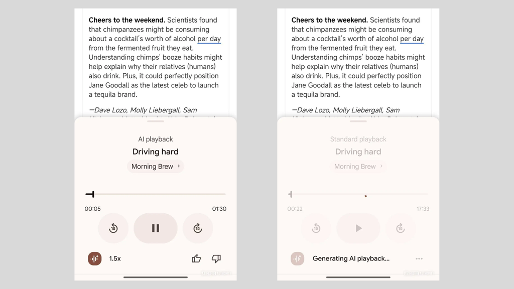 De acordo com a matéria original, é possível escolher uma opção para ativar os Audio Overviews (nome da ferramenta em inglês). A IA analisa a página e cria uma discussão entre dois locutores para tornar a leitura mais dinâmica.