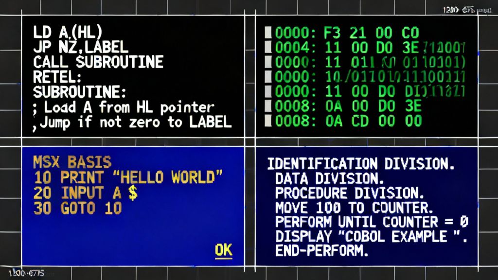 Era o nível mais básico de programação, composto apenas por sequências de uns e zeros. Cada bit correspondia a uma instrução direta para o processador. Rápida, porém exaustiva e propensa a erros — qualquer deslize podia inutilizar todo o código.