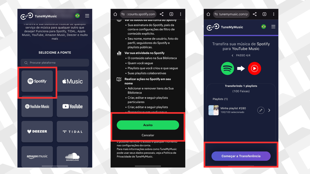 O processo exige o uso de ferramentas de terceiros, como o TuneMyMusic. Após vincular a conta do Spotify, a plataforma deixa você transferir listas da biblioteca para apps como Apple Music, Deezer e YouTube Music.