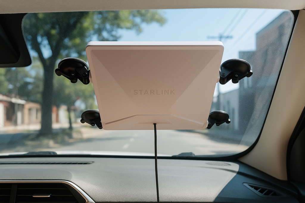 A Starlink Mini é a versão compacta do kit tradicional de antena da SpaceX. Ela pesa menos de 3 kg, pode ser transportada facilmente e foi projetada para consumo reduzido de energia, permitindo uso em áreas rurais, viagens, motorhomes ou até em locais sem rede elétrica estável.