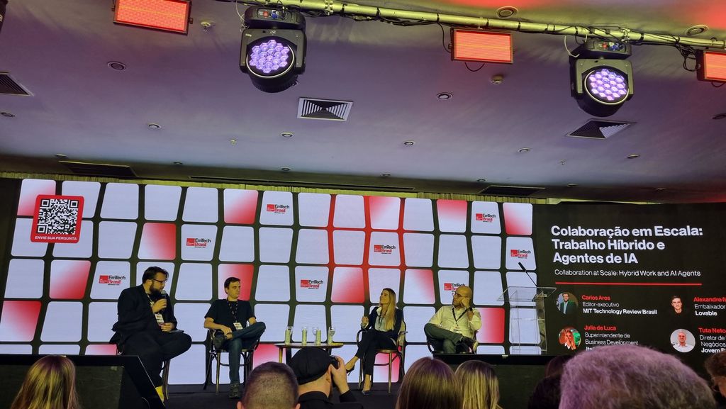 Outro ponto abordado nos painéis do EMTech, em relação às mudanças no mercado de trabalho causadas pela tecnologia, diz respeito a como os profissionais lidam com as ferramentas de IA em modelos de trabalho híbrido ou remoto.
