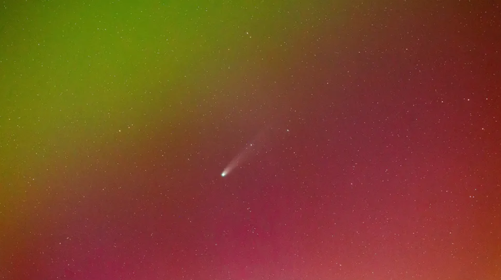 O fenômeno foi provocado por uma tempestade geomagnética de classe G2, resultado de uma ejeção de massa coronal do Sol que chegou à Terra com dois dias de atraso. Essa perturbação no campo magnético terrestre criou o cenário perfeito para que o cometa brilhasse ainda mais em contraste com o espetáculo de luzes.
