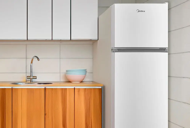 A linha duplex da Midea é uma das mais equilibradas em custo-benefício. Os modelos variam entre 294 litros (RT411) e 347 litros (RT468) com freezer separado na parte superior, o que melhora a organização interna. A tecnologia Cycle Defrost otimizado reduz o acúmulo de gelo e prolonga o tempo entre cada degelo.