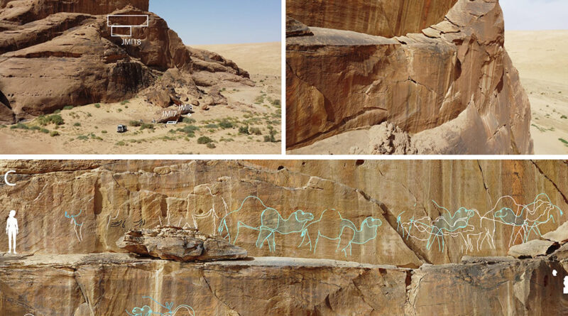 Uma equipe internacional de arqueólogos descobriu no norte da Arábia Saudita gravuras monumentais de cerca de 12 mil anos representandoem tamanho natural camelos, gazelas, íbex (um tipo de caprino), equídeos selvagens e auroques (um bovino extinto no século 17).