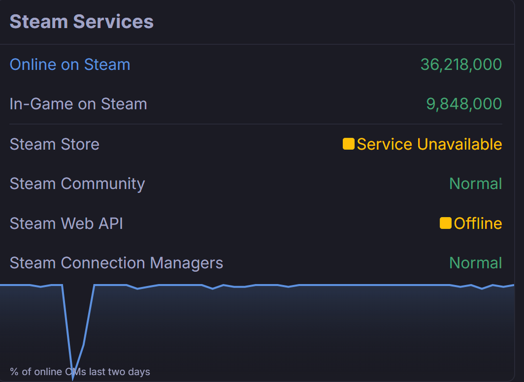 Essa instabilidade também teria afetado a contagem de jogadores simultâneos no Steam.
