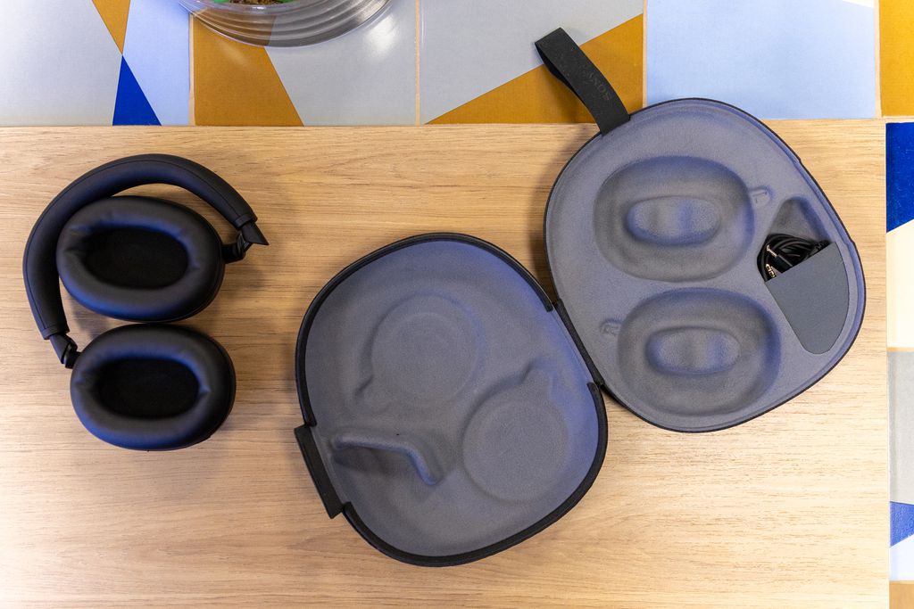 Já no Sony WH-1000XM6, o conforto também é um ponto alto: o fone é bem leve e ganhou um headband mais largo, com conchas reposicionadas para melhor ergonomia. O encaixe fica mais firme após algum tempo de uso e a construção inclui partes metálicas que reforçam a durabilidade.