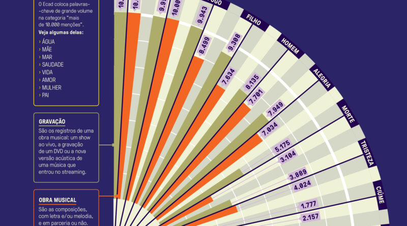 A pedido da Super, o Ecad (órgão que recolhe de rádios, streamings e shows os royalties dos músicos brasileiros) levantou algumas das palavras mais comuns que aparecem no título das canções nacionais. Confira: