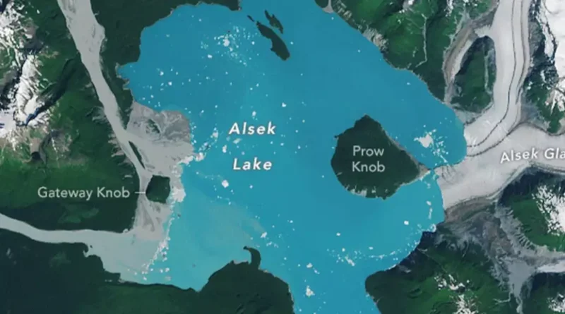 Conforme a geleira foi derretendo e afinando, a água do degelo passou a se acumular e formar o que os cientistas chamam de “lagos proglaciais” — grandes corpos d’água criados pelo escoamento do derretimento do gelo dentro da bacia glacial. Esse processo foi ampliando lentamente o lago conhecido como Alsek Lake, que passou a ocupar cada vez mais espaço ao redor da montanha.