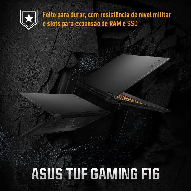 o ASUS TUF Gaming F16 tem como diferencial sua certificação de resistência a nível militar (Imagem: ASUS)