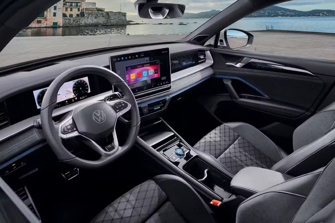 Já a cabine do SUV acompanha a identidade visual dos veículos mais recentes da marca. O interior traz central multimídia flutuante de 13” compatível Android Auto e Apple CarPlay, e um painel de instrumentos totalmente digital. O acabamento mistura couro e tecido texturizado.