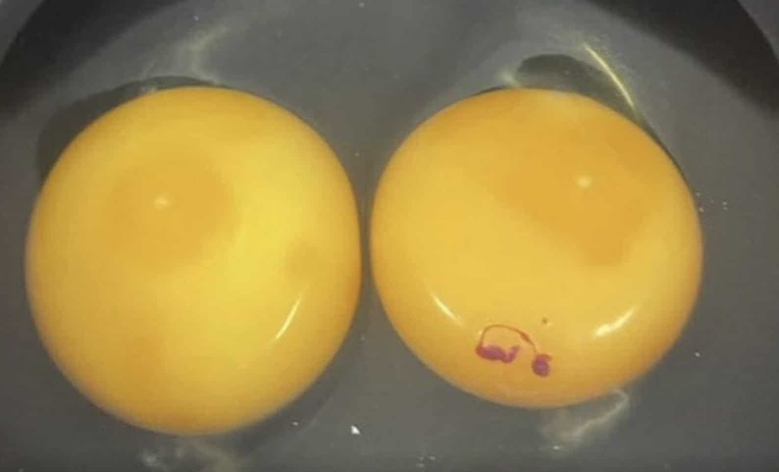 O que significa aquela mancha vermelha escura que às vezes tem na gema do ovo?