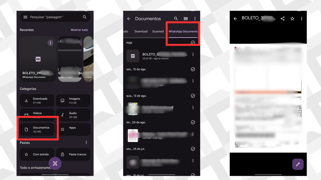 O caminho funciona caso o WhatsApp tenha conseguido baixar o arquivo original — caso contrário, o documento não fica salvo na respectiva pasta. A solução é entrar em contato com a pessoa que compartilhou o PDF e pedir para enviá-lo novamente por outra plataforma, como e-mail ou serviço de armazenamento em nuvem.