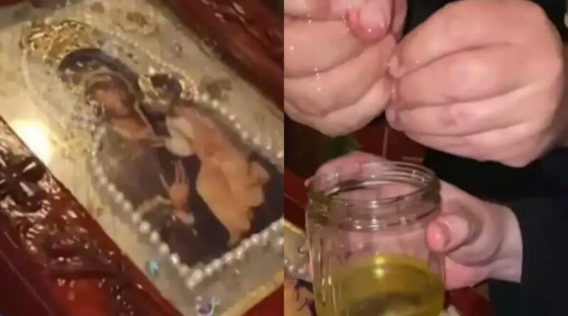 Preocupados, os membros da igreja se perguntaram se alguém havia limpado ou ungido a imagem recentemente, mas todos negaram. Logo em seguida, o padre notou que uma gota de óleo perfumado se formava no joelho esquerdo do Menino Jesus retratado na imagem. A substância, pegajosa e transparente, foi identificada como mirra — a mesma resina citada em textos bíblicos.