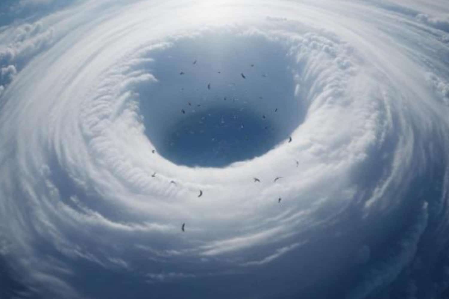 O olho do furacão pode parecer tranquilo, com céu parcialmente limpo e baixa pressão atmosférica. Porém, é cercado por um muro de vento impenetrável, formado por nuvens com correntes intensas. Para as aves, isso significa uma armadilha mortal: elas não conseguem escapar do centro, pois qualquer tentativa de atravessar os ventos resulta em exaustão ou morte.