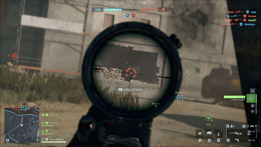 Outra coisa comum são as classes. O game traz quatro: Assalto, Engenharia, Suporte e Reconhecimento, cada uma com suas especialidades. Particularmente, gosto de ser o sniper nesse tipo de jogo, mas alterno com o gameplay mais frenético do Assalto, que geralmente é a linha de frente no campo de batalha.
