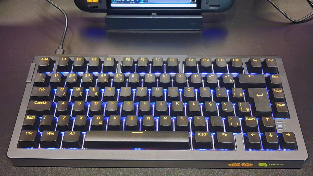 A Tectoy disponibilizou duas versões de teclado mecânico. A primeira é o ZN165 Pro, que foca no público de entrada por ser mais barata e leve. Já o modelo ZN175 Pro 75% conta com 1,3 kg, formato ergonômico e construção premium robusta (que é o que estamos avaliando por aqui!).