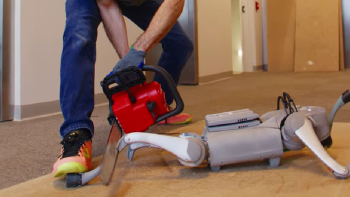 Robô é destruído por motosserra e consegue adaptar movimentos à perda de membros