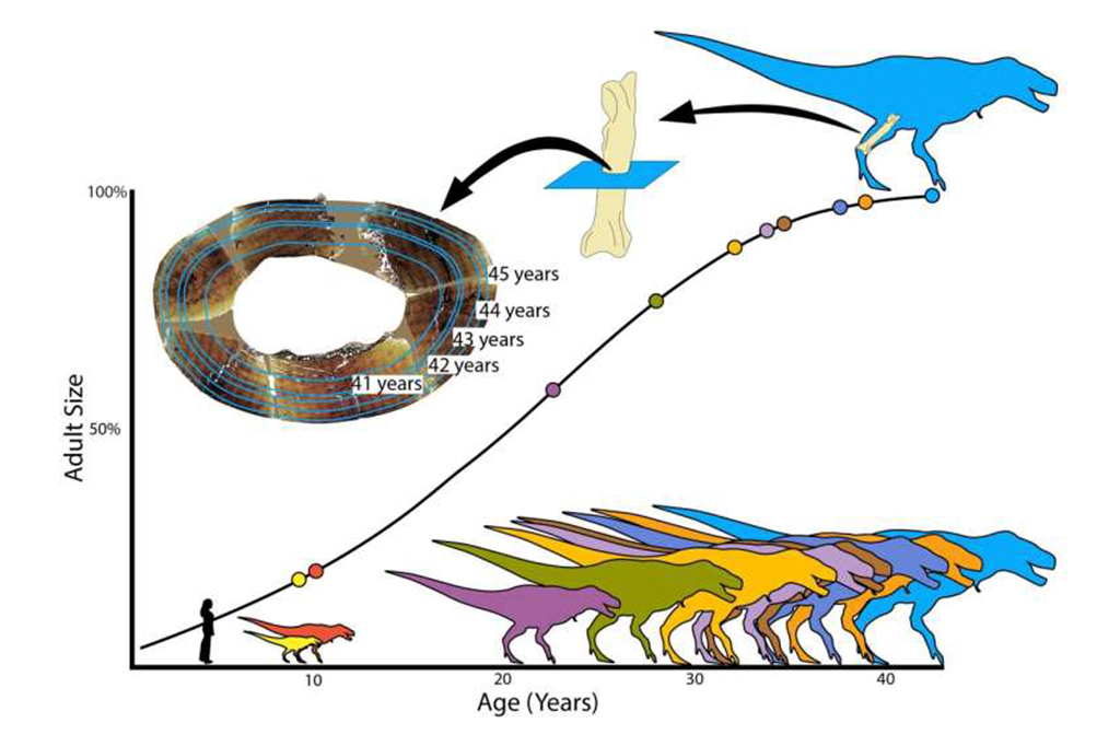 Os modelos clássicos de crescimento do T. rex desenvolvidos no início dos anos 2000 usaram esse princípio, mas tinham limitações importantes. Eles se baseavam em um número pequeno de fósseis (no máximo sete indivíduos) e frequentemente combinavam dados de diferentes ossos do esqueleto, que não crescem nem se remodelam da mesma forma.