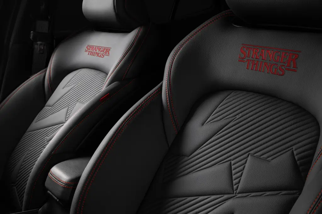 A diferença é que, neste modelo, uma placa com o logotipo da série substitui o tradicional emblema da Abarth. O acabamento interno do carro segue o estilo do exterior, com vinil com costuras pretas, bancos bordados com o logo de Stranger Things e soleiras de porta temáticas