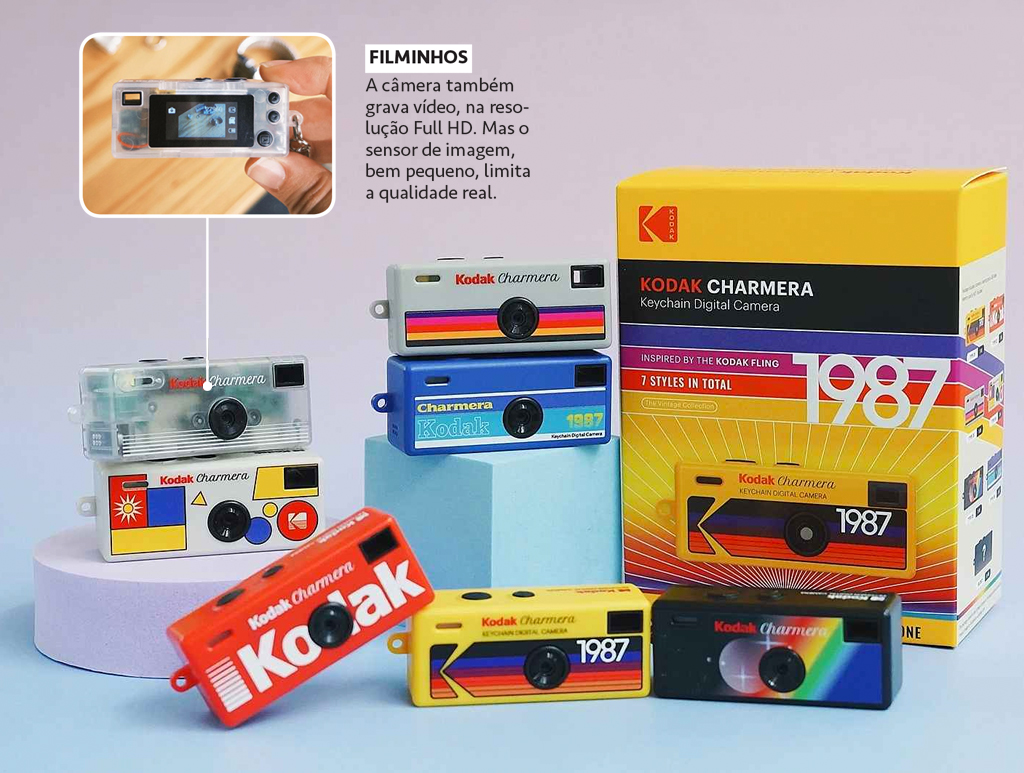Com o tempo, tudo fica antigo o suficiente para despertar nostalgia. Depois do vinil e da foto analógica, chegou a hora das câmeras digitais. A Kodak Charmera leva ao limite a proposta retrô: tem uma telinha bem pequena, de 0,8 polegada, e resolução de imagem propositalmente baixa, mísero 1,6 megapixel (dez vezes menos que um smartphone).