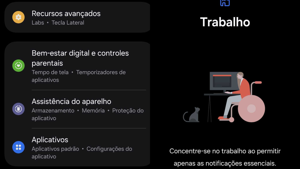 O modo foco permite bloquear temporariamente aplicativos que distraem, como redes sociais e jogos. É perfeito para estudar ou trabalhar com mais concentração. Para ativar, você deve ir em configurações, bem-estar digital e modo foco. Em seguida, é só selecionar os apps que deseja pausar.