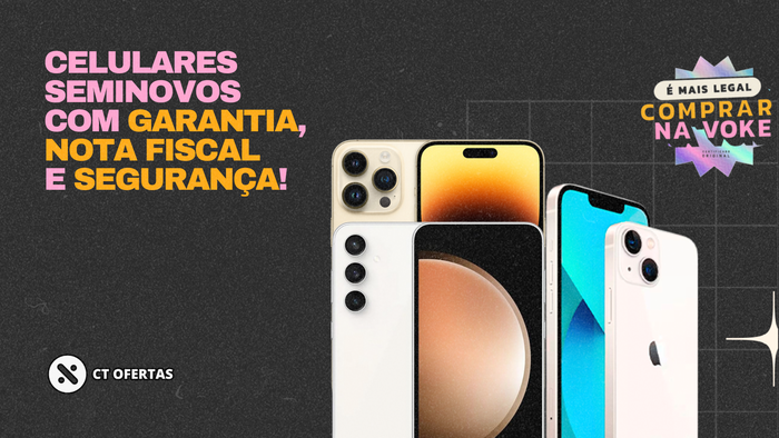 A Voke, especializada em eletrônicos seminovos, oferece smartphones usados que passam por inspeção técnica e estética, além de sanitização completa de dados. Todos os modelos saem com nota fiscal, garantia de até 6 meses e podem ser parcelados em até 10x sem juros. Veja algumas ofertas de celulares usados na Voke: