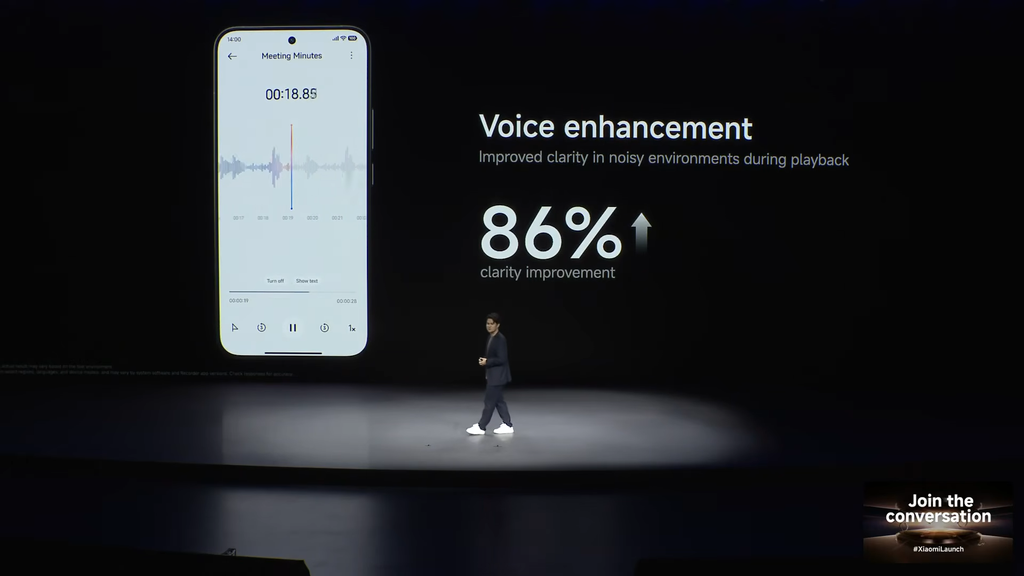 Ainda nas ferramentas de IA, o HyperOS ganhou uma função para reduzir ruídos externos em gravações de áudio. O recurso prioriza a voz de quem está falando e pode limitar sons de ventos, equipamentos e conversas ao fundo.